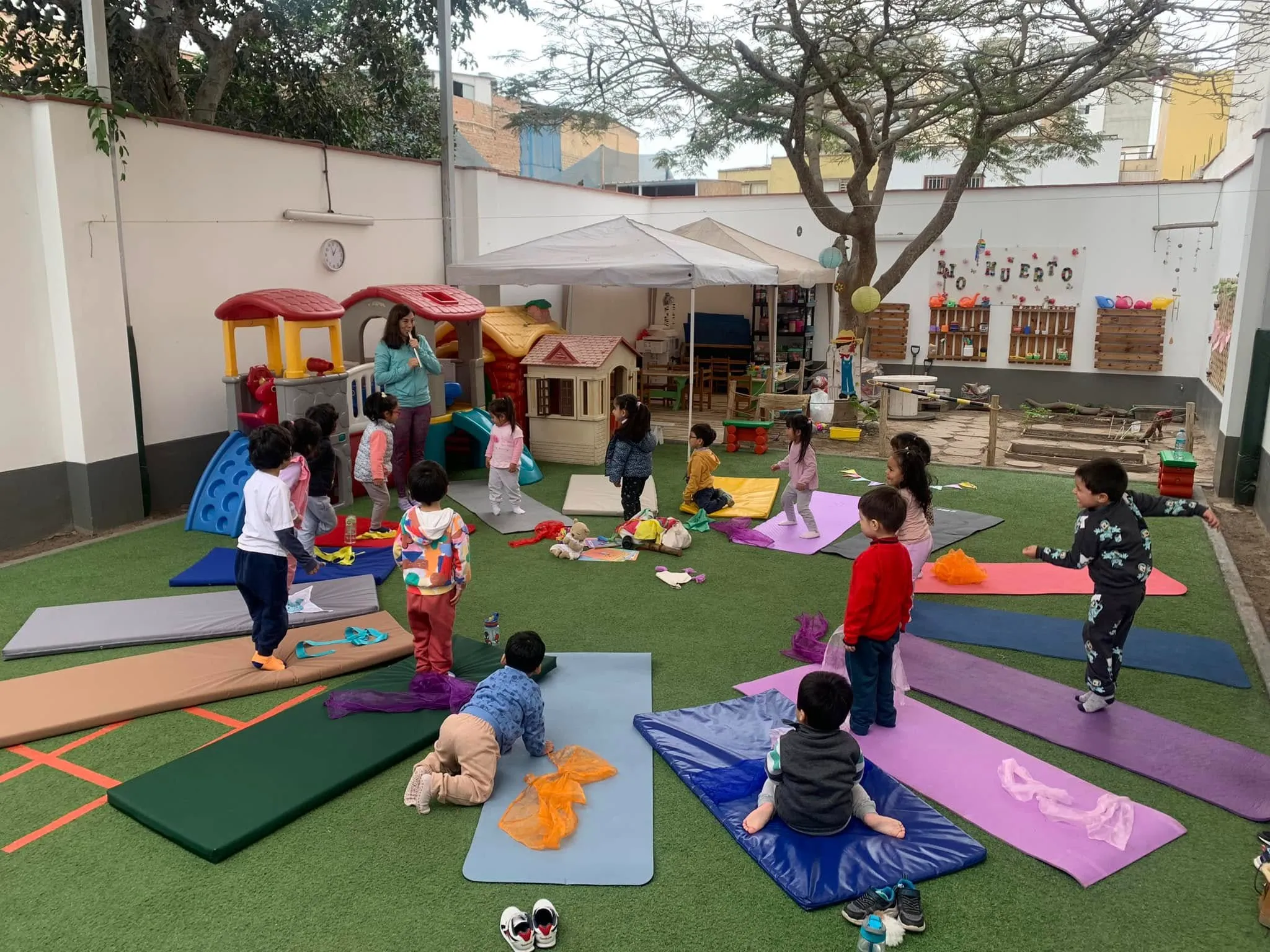 Te enseñamos canciones simples (¡muchas son de repetición y gestos!), ritmos con palmas, percusión corporal y hasta apps gratuitas que hacen el “backing track” por vos.